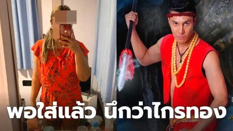 สาวเพลีย!! สั่งชุด จั้มสูท ขาสั้นสีแดงลายดอกไม้ พอใส่แล้วนึกว่าไกรทองกำลังจะไปปราบจระเข้