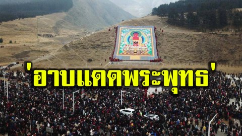 อลังการ! ทิเบตจัดพิธี 'อาบแดดพระพุทธ' ณ เนินเขาวัดลาบรัง