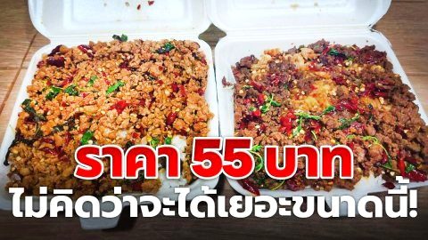 อิ่มยันชาติหน้า!! สาวหิวจัด สั่งผัดกระเผรา ไม่คิดว่าจะได้เยอะขนาดนี้ ราคา 55 บาท!