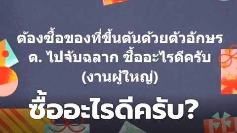 ต้องซื้อของที่ขึ้นต้นด้วยตัวอักษร ต. ไปจับฉลาก ซื้ออะไรดีครับ? (งานผู้ใหญ่)