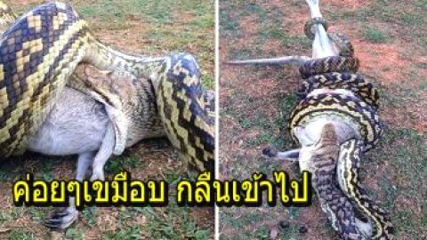 สุดขนพอง!! เมื่อ "ต่างชาติ" เผยคลิปวินาที "งูเหลือม" เขมือบตัววอลลาบี หมารอดหวุดหวิด (ชมคลิป)