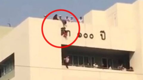 เด็กวิ่งไล่จับจิ้งจก พลัดตกตึกโรงพยาบาล เสื้อเกี่ยวอักษร ร่างค้างอยู่กับตึก