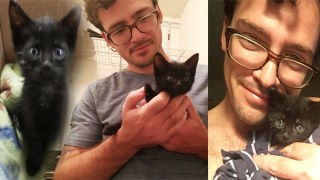 ลูกแมวกำพร้าผล็อยหลับไปในอ้อมแขนชายหนุ่ม สุดท้ายใจอ่อนรับเลี้ยงเจ้าเหมียวซะเลย