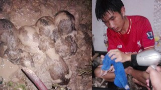 หัวใจหล่อมาก! หนุ่มยอมฝ่าฝนกลางดึก ช่วยลูกหมา 7 ตัว จมโคลน