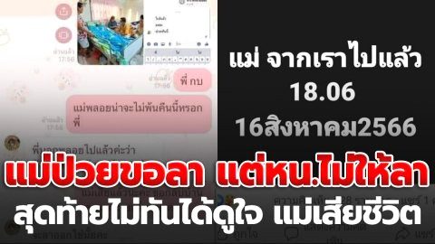 สาปสนั่น! "สาวลูกจ้าง" ขอลาไปดูใจแม่ป่วยหนัก "หัวหน้า" ลั่น ไม่ให้ลา สุดท้ายแม่เสียชีวิต