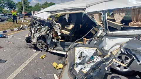 รถตู้ชนท้ายรถบรรทุก บาดเจ็บจำนวนหลายราย