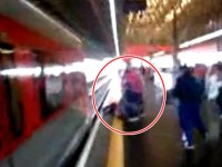 ชะตาเกือบขาด! โดดลงไปในรางรถไฟ หวิดโดนรถไฟเหยียบ (คลิป)