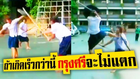 ถ้าเกิดเร็วกว่านี้ กรุงศรีคงไม่แตก เผยคลิป นร.หญิง เรียนวิชากระบี่กระบองแบบดุดันสุดๆ จาพนมยังยอมแพ้
