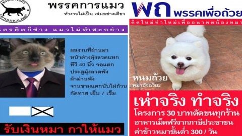 ล้อเลียนน่ารัก!! ขำสนั่น 2 พรรคนี้จะเลือกใคร พรรคเพื่อถ้วย กับ พรรคการแมว