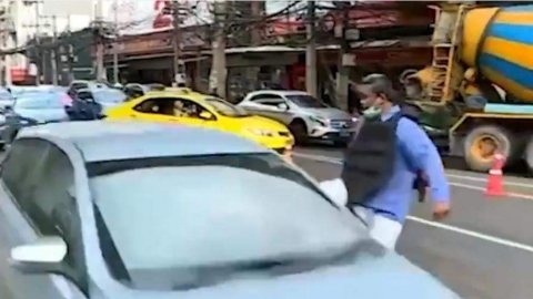 เปิดคลิปชุลมุน! เก๋งขับผ่านกลางม็อบ รีบไปรับลูก โดนการ์ดเตะรถ หวิดมีเรื่อง