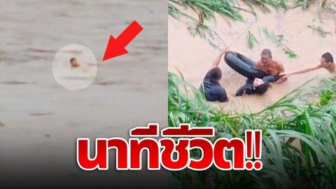 เปิดคลิปนาทีชีวิต! หนุ่มพยายามเอาตัวรอด หลังขับรถข้ามสะพาน เกิดน้ำซัดขาด ตกลงไปทั้งคนทั้งรถ