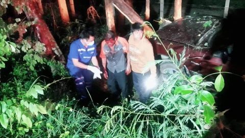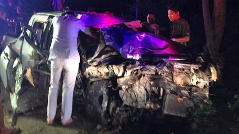 รถยนต์กระบะสองตอนเสียหลักพุ่งชนต้นไม้ข้างทาง รถหน้ายับ-บาดเจ็บ 5 ราย