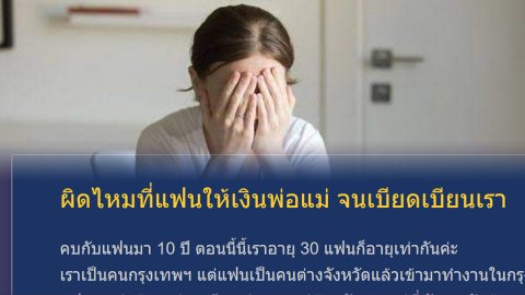 สาวตัดพ้อแฟน!!ที่ให้เงินพ่อแม่ จนต้องเดือดร้อนตน
