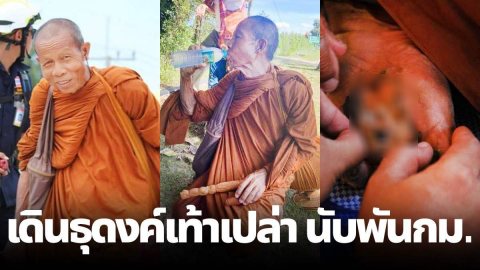 "หลวงตาบุญชื่น" ธุดงค์ ถึงวัดไพรพัฒนาแล้ว..ท่านอายุ 72 ปี เดินธุดงค์เท้าเปล่านับพันกิโลเมตร