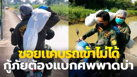 ทุลักทุเลสุด! กู้ภัยเข้าเก็บศwในซอยแคบ แบกพาดบ่าขึ้น จยย. สุดยากลำบาก