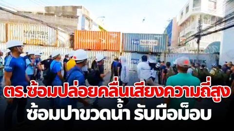 ตำรวจซ้อมปล่อยคลื่นเสียงความถี่สูง ซ้อมปาขวดน้ำ จำลองสถานการณ์