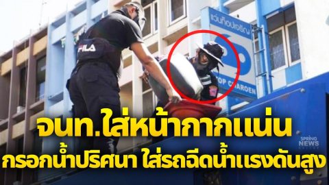 จนท. ใส่หน้ากากแน่น! กรอกน้ำปริศนา ใส่รถฉีดน้ำแรงดันสูง หวั่น น้ำสารพิษ
