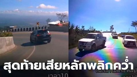 กระบะห้าว! ขับแทรงทางโค้งลงภูทับเบิก สุดท้ายเสียหลักพลิกคว่ำ