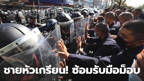 ชายหัวเกรียน! ซ้อมรับมือม็อบ "แก้เขินนักข่าว" หลัง จนท.วางแบบจัดเต็ม แต่ "ไร้ม็อบ"