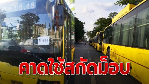 รถร่วม ขสมก.มากกว่า10 คัน ถูกจอดไว้บนถนนลูกหลวง คาดถูกนำมาใช้ทำแนวสกัดผู้ชุมนุมราษฎรพรุ่งนี้
