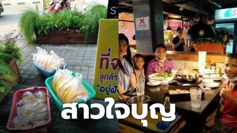 สาวใจบุญ เลี้ยงชาบู 3 เด็กน้อยเดินเร่ขายขนม ช่วยให้อิ่มท้องของอร่อยกัน 1 มื้อ