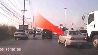 คลิปอุบัติเหตุ! 6 ล้อเลี้ยวซ้าย Vs เก๋ง โดนชนลาก กลางถนน โชคดีไม่เป็นไร
