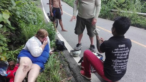 เกิดอุบัติเหตุ หญิงต่างชาติจักรยานยนต์เสียหลักโค้งเนเจอร์บีชเกาะช้าง