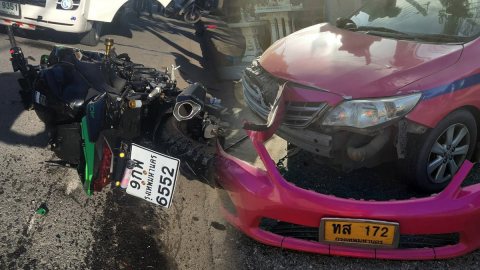 เกิดอุบัติเหตุ รถจักรยานยนต์ชนกับรถนั่งสาธารณะ บาดเจ็บสาหัส 1 ราย