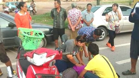อุบัติเหตุ เฉี่ยวชนระหว่างรถยนต์กระบะและรถจักรยานยนต์ หญิงสูงอายุได้รับบาดเจ็บ