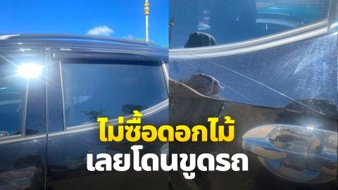 สาวเดือด! โดนขูดรถ หลัง เจอคนยัดเยียดดอกไม้ แต่ไม่ซื้อ
