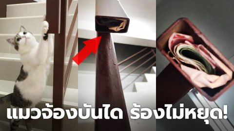 ทำดีมาก! สาวกำลังเดินขึ้นห้อง เห็นแมวจ้องบันได ร้องไม่หยุด พอไปดูถึงกับยิ้ม