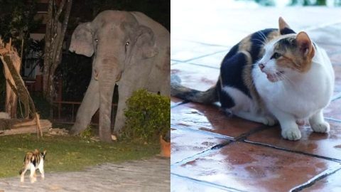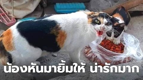 หนุ่มปลื้ม เอาอาหารให้แมวจร น้องดีใจหันมายิ้มให้น่ารักมาก...