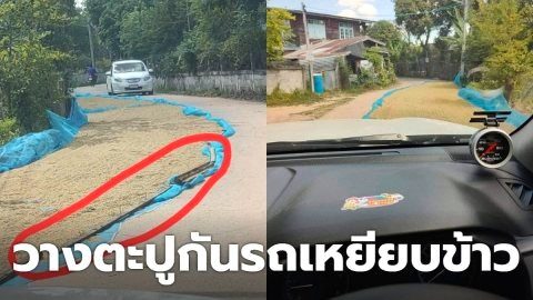 วิจารณ์สนั่น!! ตากบนถนนยังไม่พอ แถมแอบ "วางตະปู" กันข้าวไว้อีก หวั่นอันตราย