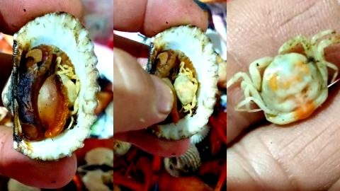 หนุ่มสงสัย ซื้อหอยแครง แกะออกมา เจอปูในหอยแทบทุกตัว