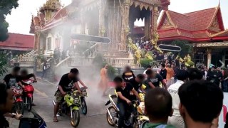 ส่งเพื่อนรัก!! กลุ่มแว้นจำนวนมากเร่งเครื่อง-เบิร์นยางควันโขมงเต็มวัด ส่งวิญญาณเพื่อนหน้าเมรุ!!??