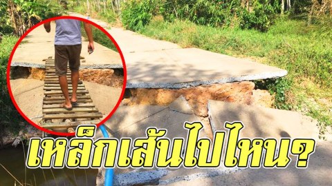 แบบนี้ก็ได้เหรอ! ถนนพัง..แต่แปลกใจเหล็กเส้นหายไปไหน?