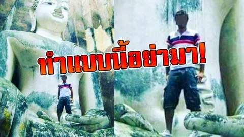 ต่างชาติปีนขึ้นไปบนองค์พระถ่ายรูป ชาวเน็ตจวกทำแบบนี้อย่ามา!