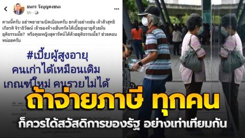 "ธนกร" โพสต์ชี้แจงถึงกรณีเบี้ยผู้สูงอายุ ชาวเน็ตลั่น ถ้าจ่ายภาษี ทุกคนก็ควรได้สวัสดิการของรัฐอย่างเท่าเทียมกัน