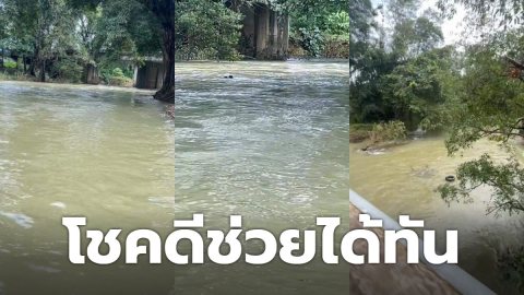 ระทึก! เด็กน้อย 3 คนไหลตามน้ำที่ซองกาเรีย โชคดีพลเมืองดีโยนห่วงยางช่วยชีวิตได้ทัน
