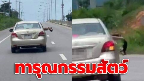 สงสารน้อง! "เก๋งใจร้าย" จับขาหลังลูกแมวห้อยหัว ชูออกนอกรถ ชาวเน็ตรุมจวก ทารุณกรรมสัตว์