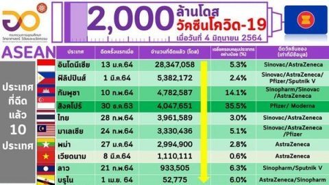 ยอดฉีดวัคซีน ประเทศในภูมิภาคอาเซียน