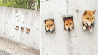 ‘แก๊งหมาชิบะ’ ที่ชอบยื่นหัวออกมานอกกำแพง ทักทายชาวบ้านแทบทุกวัน แอร๊ยยย!!!