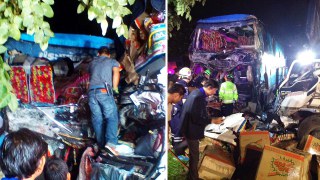 รถทัวร์พนมไพร-กรุงเทพฯ ข้ามเกาะชน 10 ล้อ ดับคาที่ 6 ศพเจ็บอีกกว่า 40