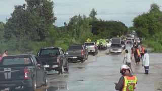 รถยนต์ลื่นตกข้างทางอื้อ เหตุน้ำท่วมถนนสาย สารคาม – ขอนแก่น