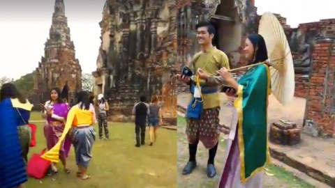 วัดไชยวัฒนารามคึกคัก แห่แต่งชุดไทยถ่ายรูปตามละคร #บุพเพสันนิวาส