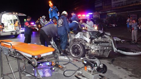 ยับทั้งคัน..ทหารช่างซิ่งเก๋งชนท้ายรถสิบล้อบรรทุกไก่ดับคาที่ 3 เจ็บสาหัสอีก 3 ราย