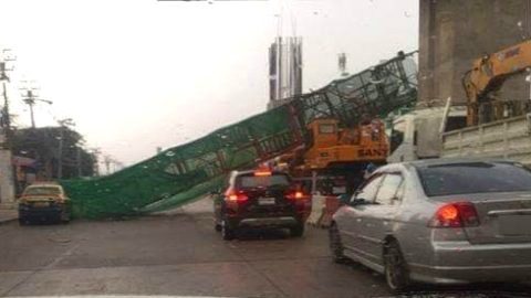 เกิดลมกระโชกแรงซัดโครงเหล็กล้มพังกลางถนน(ตลาดน้ำขวัญเรียม)
