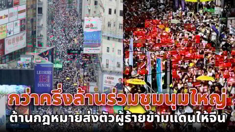 ประชาชนฮ่องกงกว่าครึ่งล้านร่วมชุมนุมใหญ่ ต้านกฎหมายส่งตัวผู้ร้ายข้ามแดนให้จีน