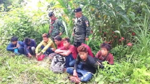รวบ 8 ชายต่างด้าว หลบซ่อนในป่าละเมาะ