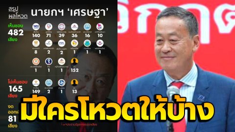 รวมผลโหวตนายกฯ เศรษฐา ทวีสิน ใครโหวตให้กันบ้างไปดูกันเลย
